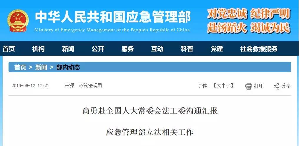 早在今年6月份,应急管理部官网显示,应急管理部党组成员、副部长尚勇带队前往全国人大常委会法工委就我部近期立法修法工作进行沟通汇报,全国人大常委会法工委主任沈春耀主持会议。