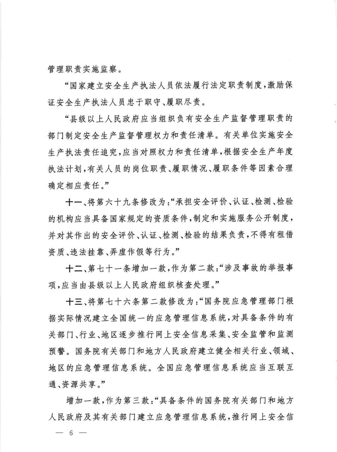 2、将第九十四条第六项修改为“未按照规定制定生产安全事故应急救援预案、应急处置方案或者未定期组织演练的”