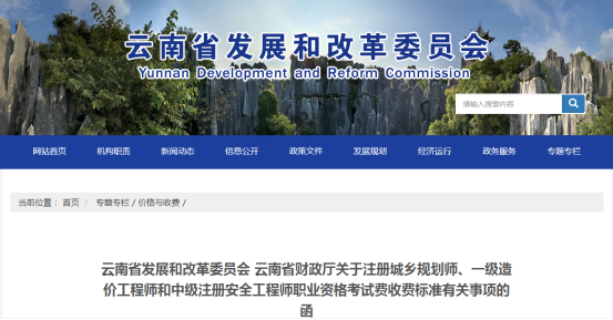 云南2020年一级造价工程师考试收费标准发布,加收50元!