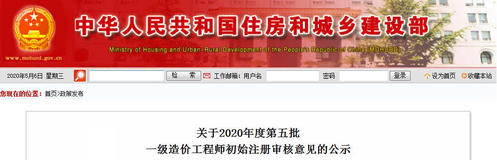 2020年度第5批造价工程师初始注册审核意见公示