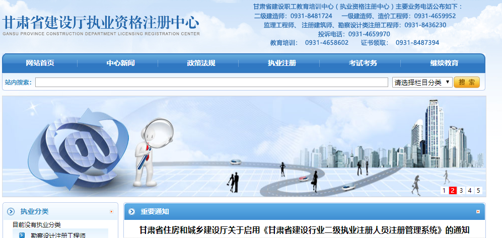 1、甘肃省住房和城乡建设厅网站(http://zjt.gansu.gov.cn/ )"业务系统"栏目下进入"二级执业人员注册管理系统"。