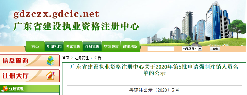 广东省建设执业资格注册中心公布2020年第5批申请强制注销人员名单