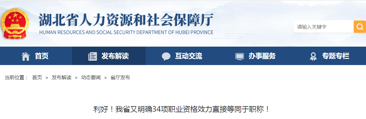 5月22日,湖北省人社厅印发了《关于建立第二批专业技术类职业资格与职称对应关系的通知,近日,省人社厅又发布了利好!我省又明确34项职业资格效力直接等同于职称!的资讯对之前发布的政策进行了解读。