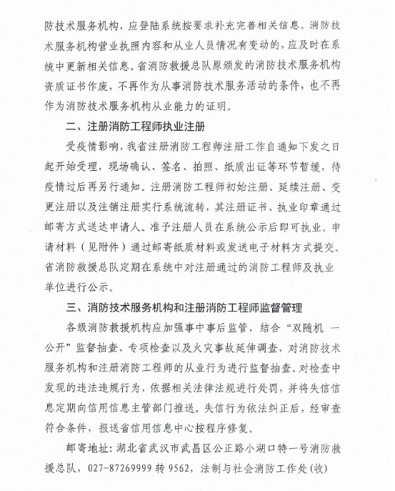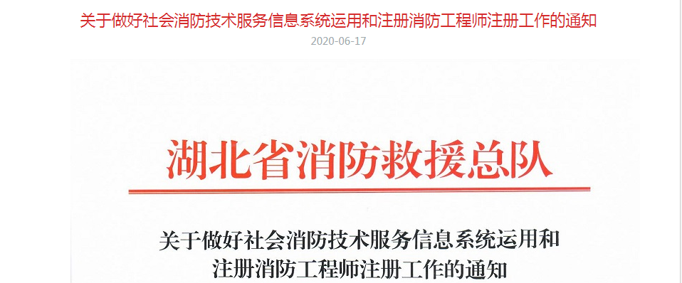 湖北消防救援总队关于做好社会消防技术服务信息系统运用和注册消防工程师注册工作的通知