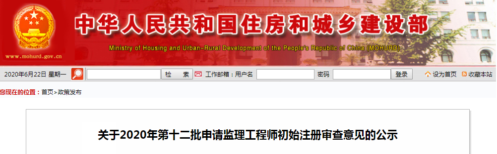 住建部公布2020年第十二批申请监理工程师初始注册审查意见