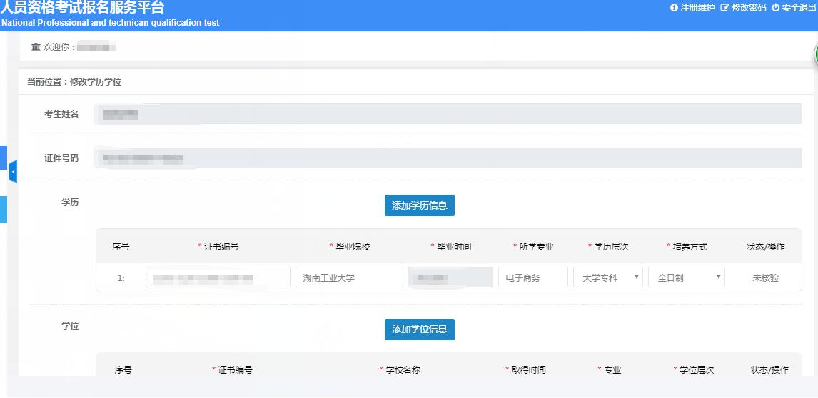 (3)学位信息最多可填写5条信息,无学位信息可不填写。