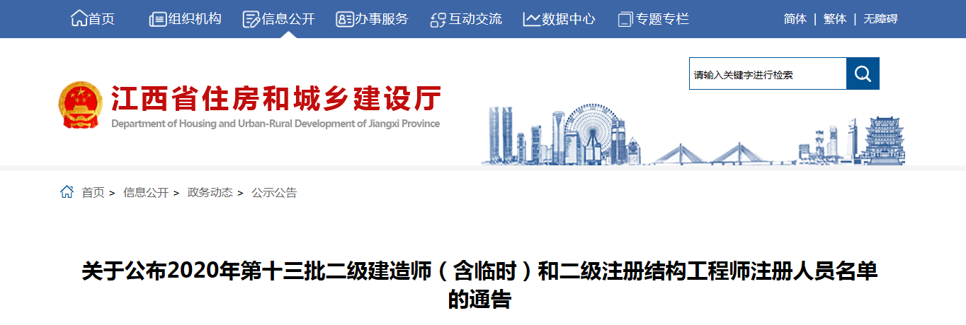 关于公布2020年第十三批二级建造师(含临时)和二级注册结构工程师注册人员名单的通告