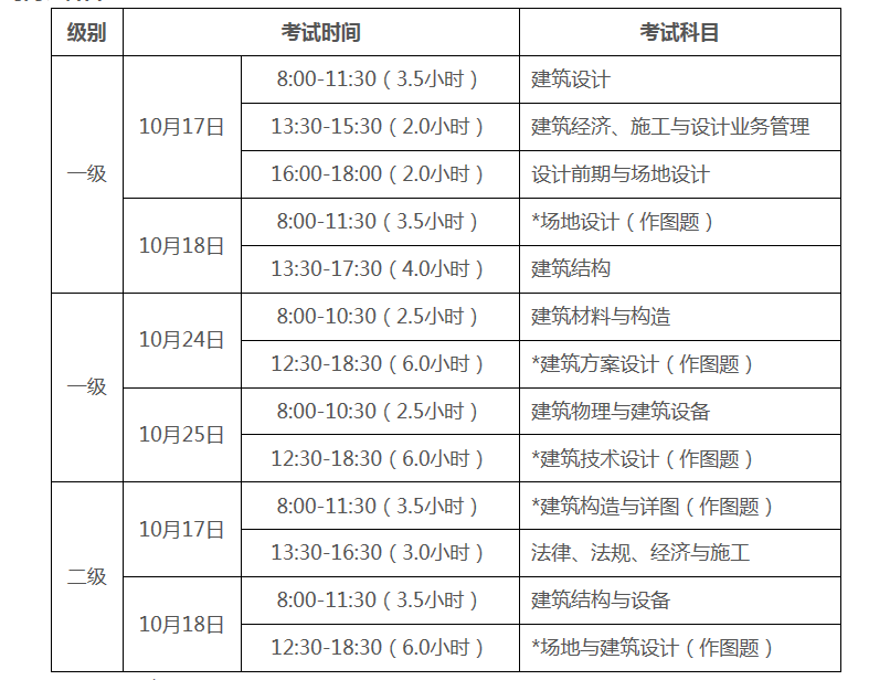 注:带*号的5个作图题考试科目的应试人员须于考试前30分钟进入考场做准备。