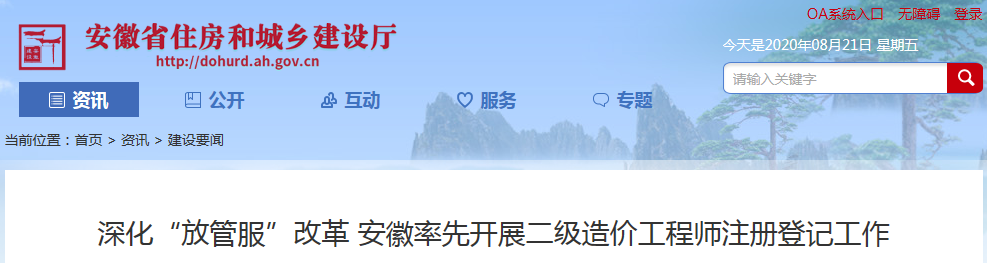 2020年7月20日,安徽省住房城乡建设厅印发《关于安徽省二级造价师注册管理有关事项的通知》(建人函〔2020〕682号),自8月1日正式启动二级造价工程师注册登记工作,此项工作的开展走在全国前列。
