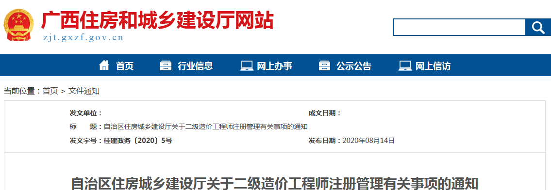 近日,广西自治区住房城乡建设厅发布了关于二级造价工程师注册管理有关事项的通知,其中对广西二级造价工程师注册条件及注册申报程序等内容进行了详尽说明,以下是具体内容: