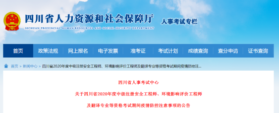 四川省2020年中级注册安全工程师考试期间疫情防控注意事项的公告
