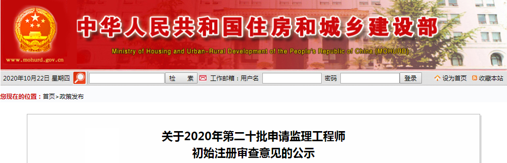 住建部公布2020年第二十批申请监理工程师初始注册审查意见