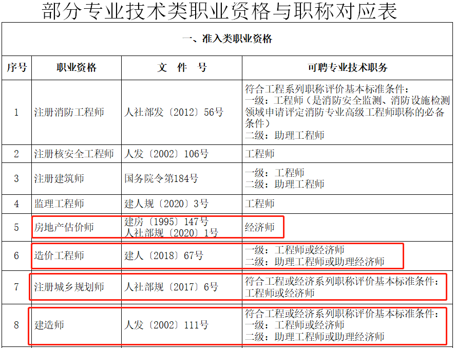 建造师和造价工程师在对应工程师的专业技术职务基础上,分别对应经济师/助理经济师。