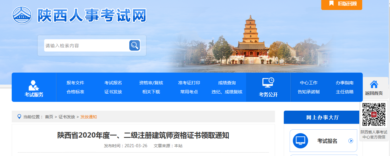 陕西省2020年度一、二级注册建筑师资格证书领取通知