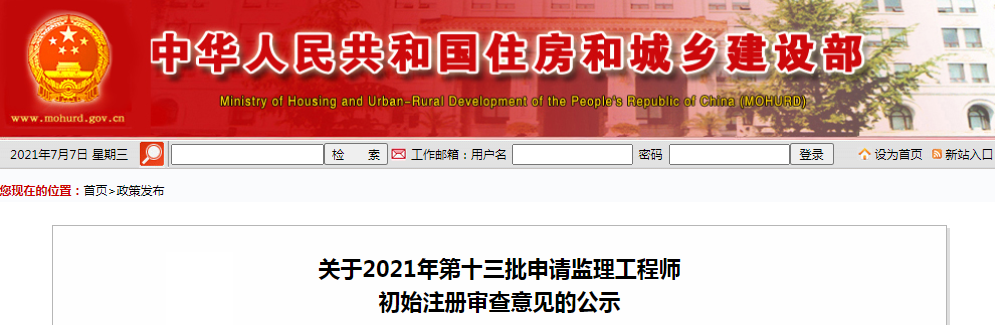 住建部公布2021年第十三批监理工程师初始注册审查意见