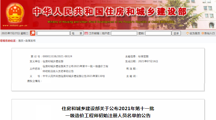 目前,关于一级造价工程师注册的相关信息。近日,住建部公示了2021年第11批一级造价工程师初始注册人员名单,小编整理了具体内容,供大家参考。