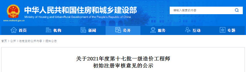 全国2021第17批一级造价工程师初始注册人员名单公示